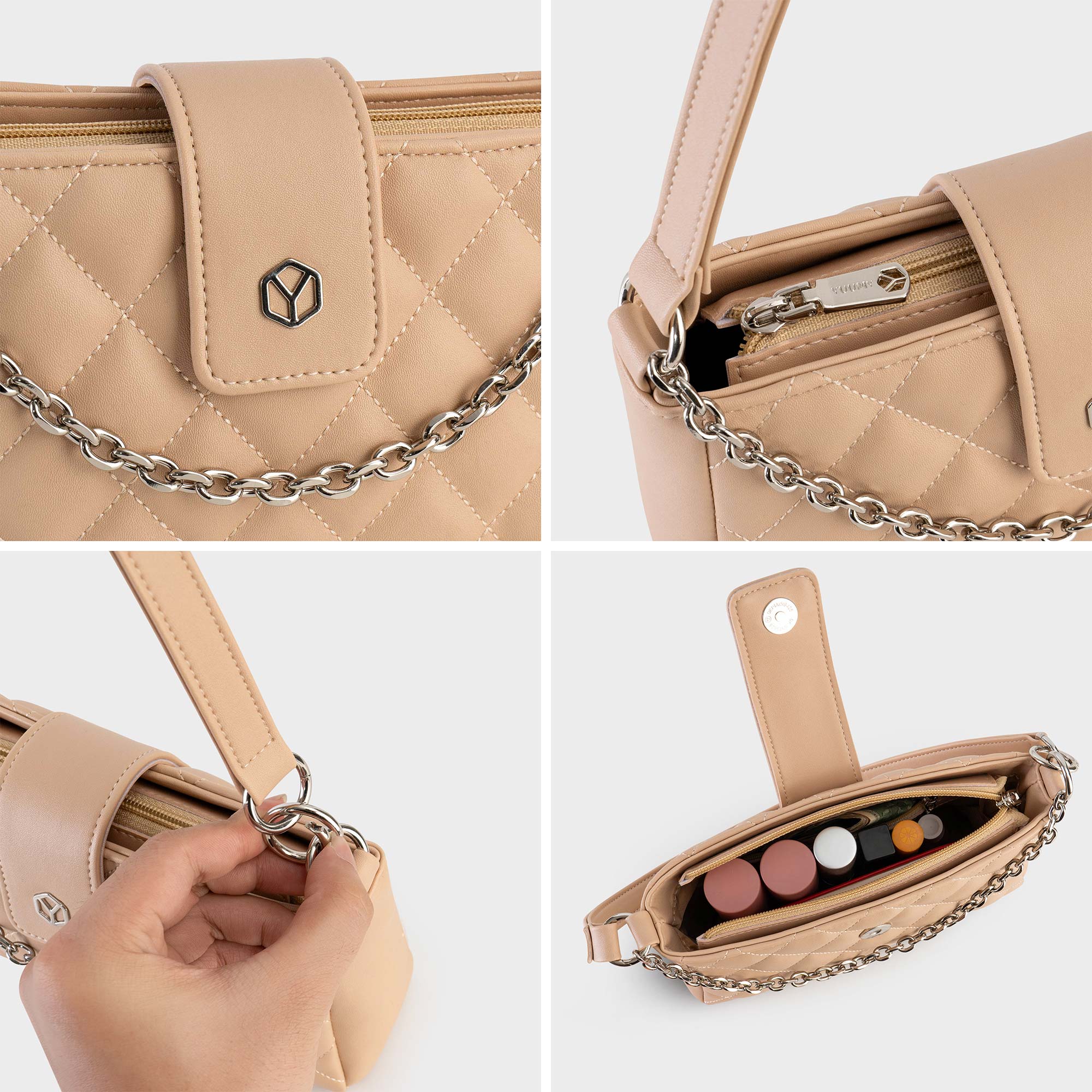 Túi đeo vai dáng cong Yuumy Seasand YN340 thiết kế dáng cong mềm mại kết hợp phần nắp gập tối giản và điểm nhấn dây xích kim loại hai bên vừa tôn lên sự nữ
