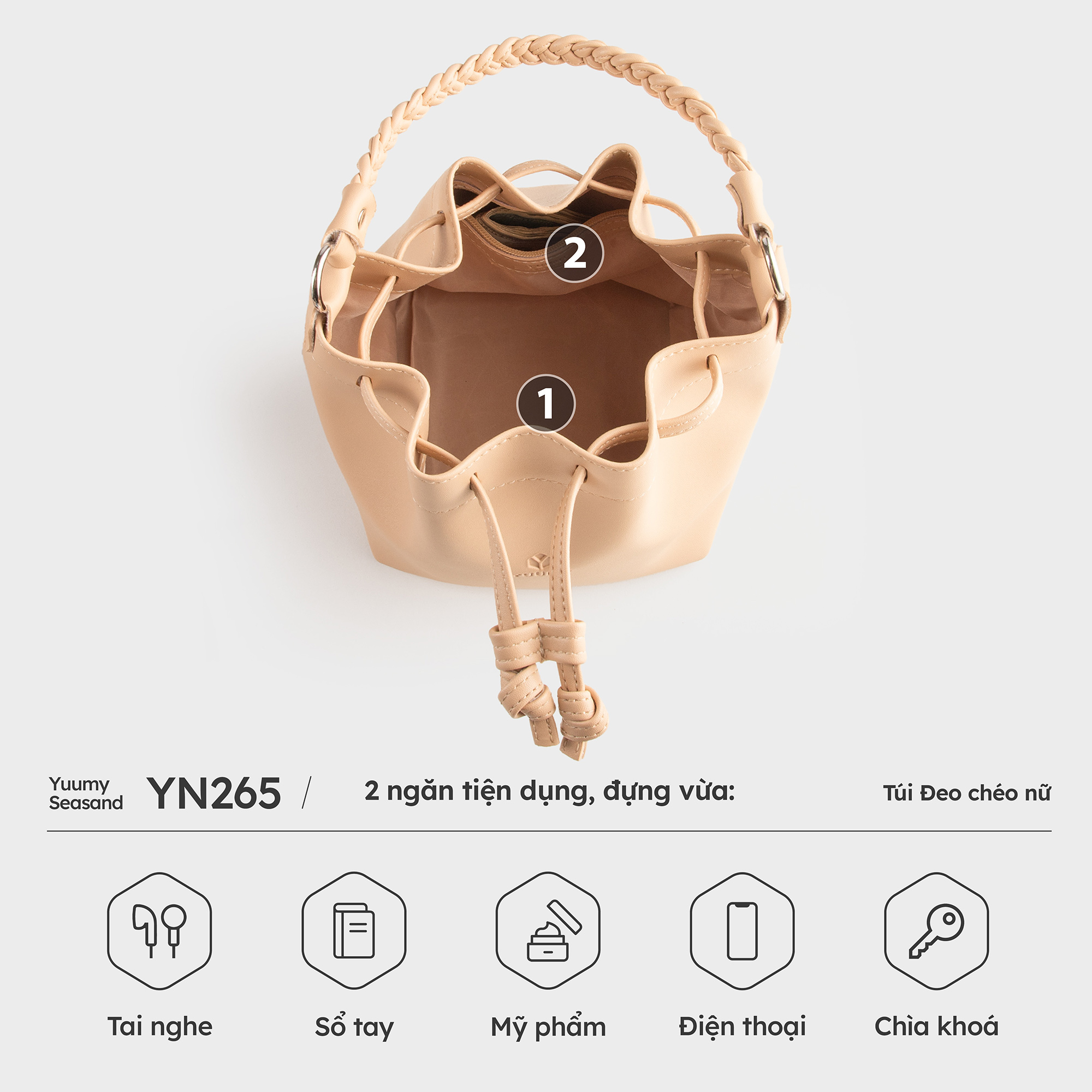 Túi đeo chéo da nữ thiết kế dây rút thời trang Yuumy Seasand YN265 đem đến cho các cô nàng những lựa chọn hoàn hảo với kiểu dáng trẻ trung năng động. Với thiết kế túi rút đặc trưng, sản phẩm không chỉ dễ dàng sử dụng mà còn là điểm nhấn thời trang nổi bật cho set đồ hàng ngày của bạn. Túi được làm từ chất liệu da cao cấp, mềm mại kết hợp với tông màu nhẹ nhàng, mang lại cảm giác sang trọng và phù hợp với mọi trang phục. Tay cầm được thiết kế dạng bện độc đáo, tăng tính chắc chắn đồng thời mang đến nét dịu dàng. Ngoài ra, dây đeo tháo dời giúp bạn linh hoạt sử dụng túi từ xách tay đến đeo chéo. Túi có kích thước vừa vặn cho mọi vật dụng cá nhân nhỏ gọn như điện thoại, ví tiền, son môi,… Phù hợp cho những buổi dạo phố, đi làm, hoặc đi gặp gỡ bạn bè.