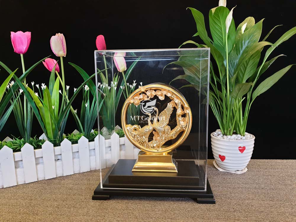 Chim hạc là linh vật có tuổi thọ sống rất lâu vì vậy tượng chim hạc là biểu trưng cho sức khỏe, sự trường tồn. Đồng thời đôi chim hạc là biểu trưng cho cuộc sống hạnh phúc, viên mãn. Vì vậy tượng đôi chim hạc dát vàng là món quà cưới ý nghĩa thay lời chúc trăm năm hạnh phúc. Tượng đôi chim công cũng là món qùa cao cấp tặng cha mẹ vợ dịp tết với ý nghĩa mong cha mẹ luôn khỏe mạnh, sống lâu hưởng phúc cùng con cháu