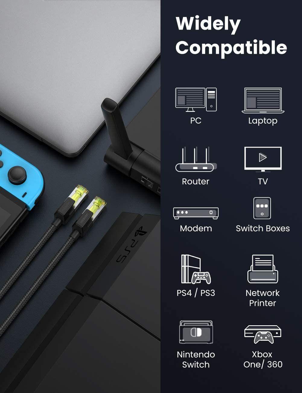 UGREEN Cat7 Flat Ethernet Cable RJ45 Flat 10Gbps LAN Cable Internet Modem Router