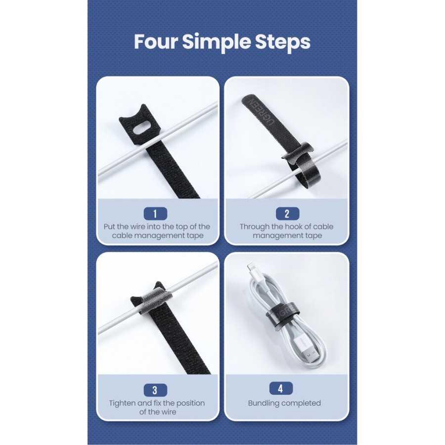 ✨Ugreen UG86419LP401TK 5 sợi 18cm màu đen Dây dán Velcro tiện dụng chất liệu plastic 1 túi có 5 chiếc 20245P5 - HÀNG CHÍNH HÃNG