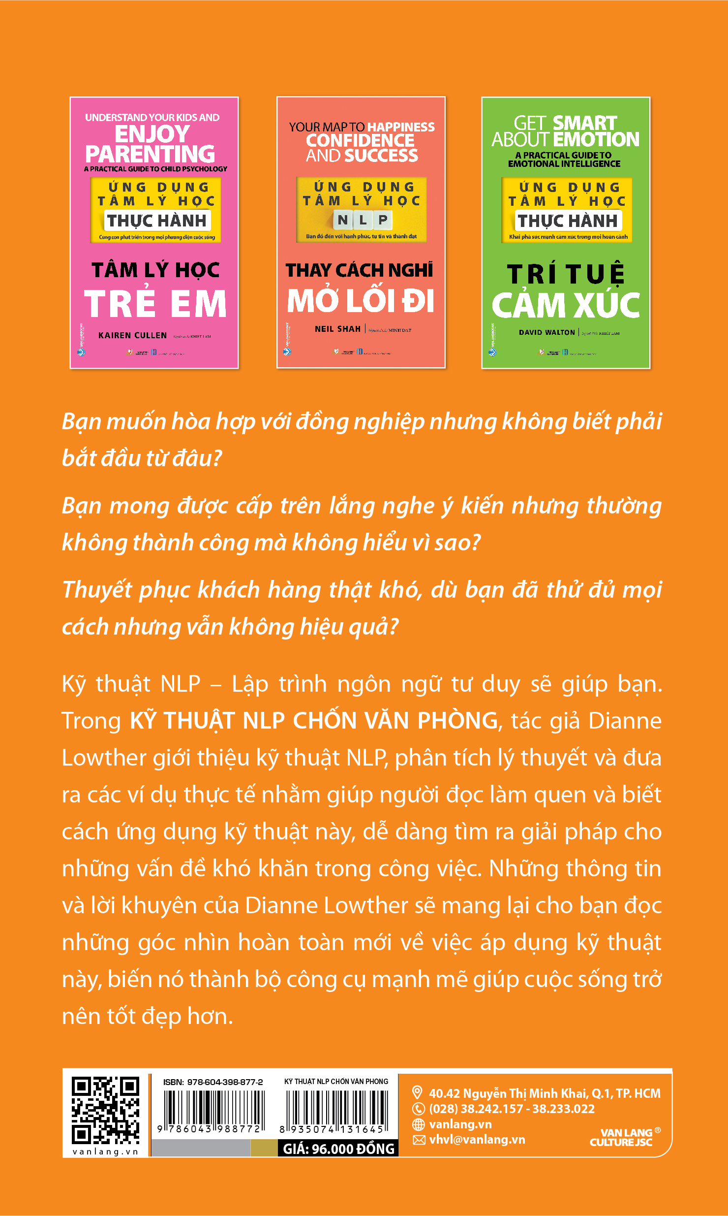 Kỹ thuật NLP – Lập trình ngôn ngữ tư duy sẽ giúp bạn. Trong KỸ THUẬT NLP CHỐN VĂN PHÒNG, tác giả Dianne Lowther giới thiệu kỹ thuật NLP, phân tích lý thuyết và đưa ra các ví dụ thực tế nhằm giúp người đọc làm quen và biết cách ứng dụng kỹ thuật này, dễ dàng tìm ra giải pháp cho những vấn đề khó khăn trong công việc. Những thông tin và lời khuyên của Dianne Lowther sẽ mang lại cho bạn đọc những góc nhìn hoàn toàn mới về việc áp dụng kỹ thuật này, biến nó thành bộ công cụ mạnh mẽ giúp cuộc sống trở nên tốt đẹp hơn.