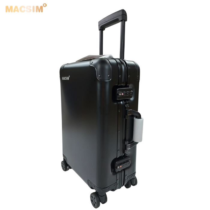 Toàn bộ thân vỏ vali Macsim làm bằng hợp kim nhôm A6063 làm cho vali rất nhẹ, độ đàn hồi cao, chống ăn mòn, chịu được tải trọng lớn.