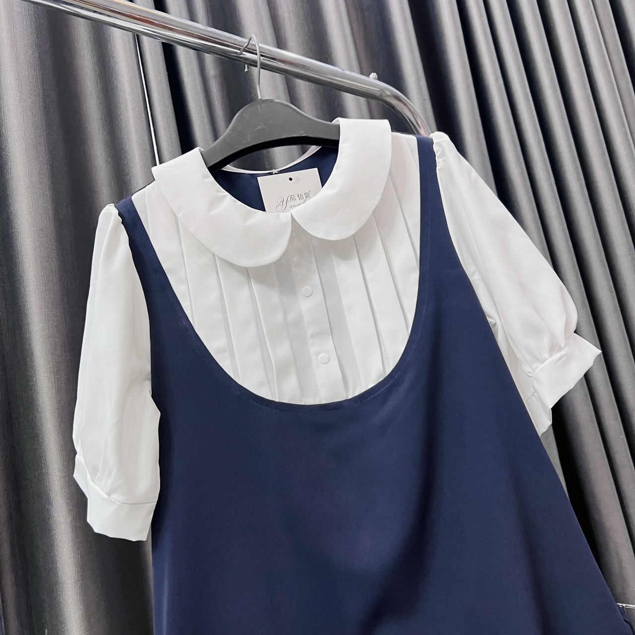 Váy bầu yếm liền thân phối cổ sơ mi đẹp, đầm yếm bầu công sở, MLEE SHOP