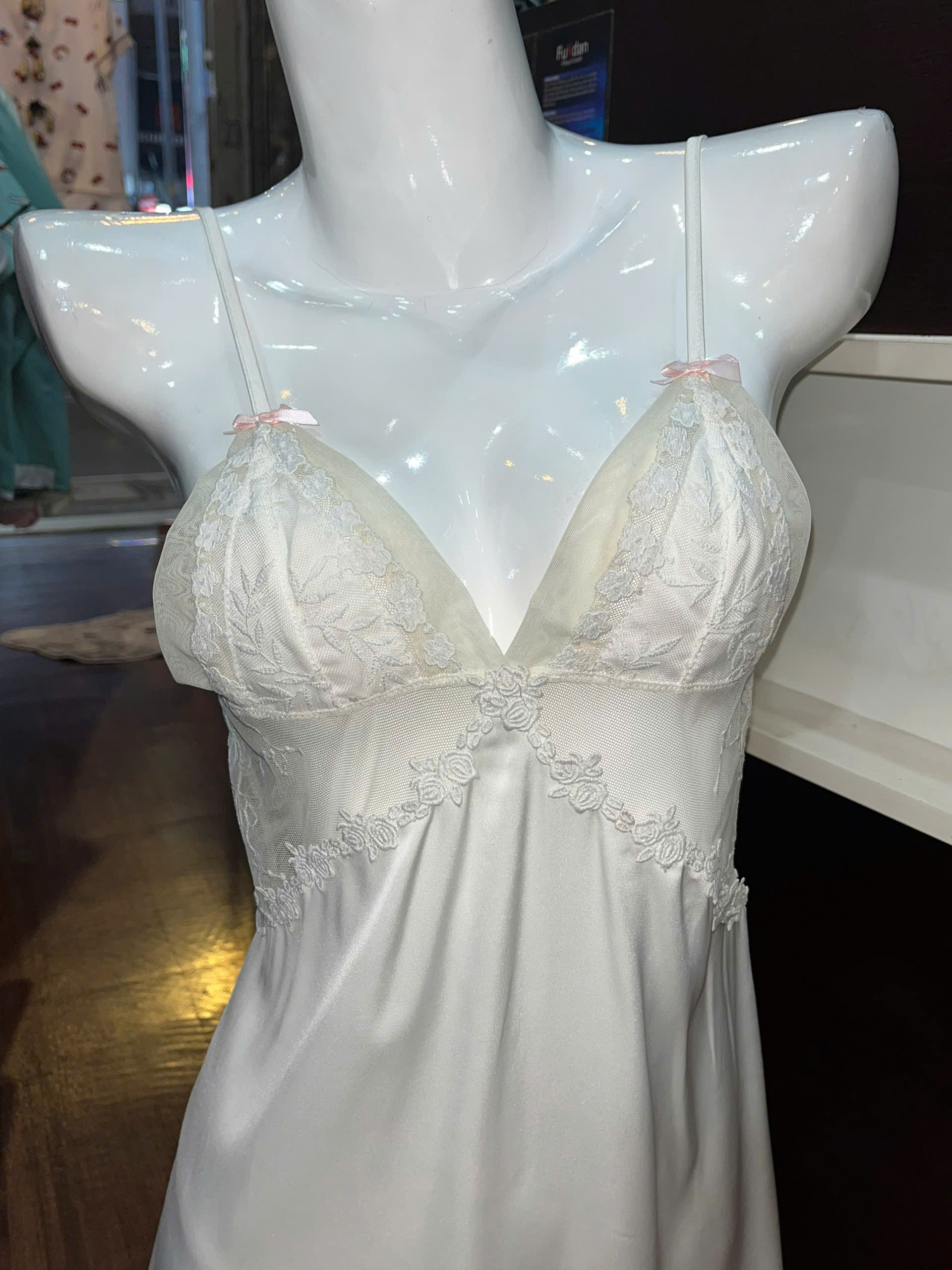 Thương hiệu: Sanny House Tên sản phẩm: Váy ngủ Chất liệu: lụa cao cấp mềm mịn, co giãn, thấm hút tốt Kiểu dáng: gợi cảm, trẻ trung, hiện đại Màu: trắng Size: dưới 56kg