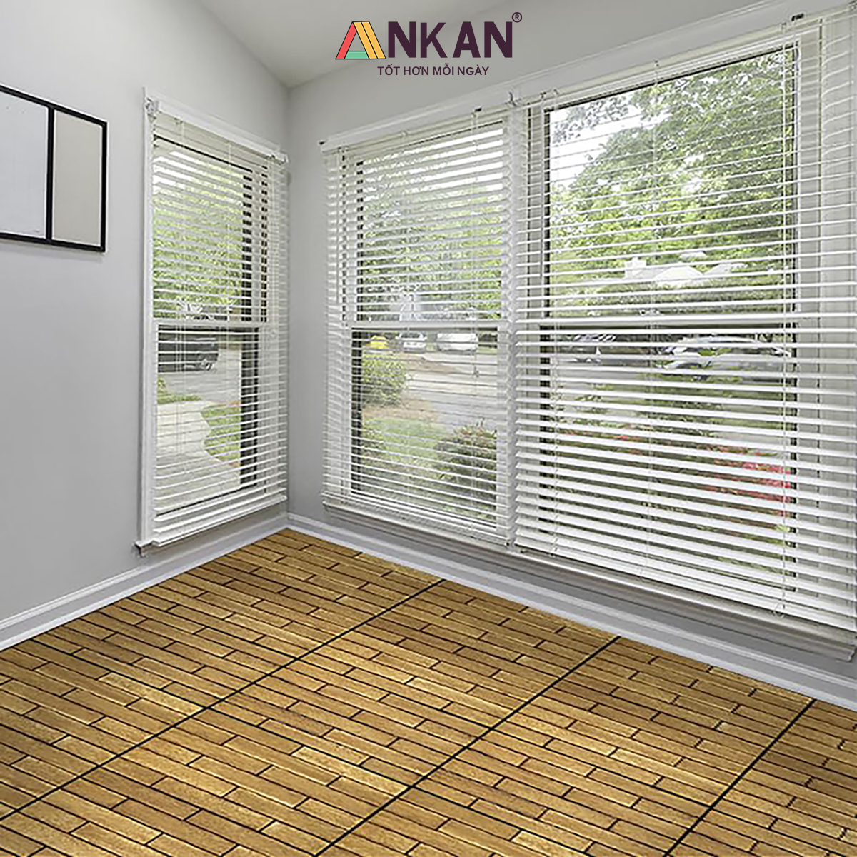 -- Vỉ gỗ lót sàn 4 nan là vỉ gỗ cao cấp nhất trong dòng vỉ gỗ lót sàn. Hiện tại, vỉ gỗ lót sàn chủ yếu xuất sang thị trường Mỹ với yêu cầu khắc khe từ đối tác. -- Do sản phẩm đẹp và độc đáo, ANKAN rất vui vì có thể cung cấp cho các bạn sản phẩm này với giá phải chăng và nhiều ưu đãi. ĐẶC ĐIỂM NỔI BẬT CỦA VỈ GỖ LÓT SÀN 4 NAN - Ván sàn gỗ 4 nan được chế tác từ thân gỗ tràm bông vàng loại cây to, ít nhất 10 năm tuổi. - Đế được làm từ nguyên liệu nhựa PP tốt, có khả năng chịu trọng lượng tương đương 1 chiếc xe bán tải. - Được giảm bén ở các cạnh kĩ càng, an toàn cho trẻ nhỏ. - Màu sắc đẹp tự nhiên, lâu phai màu, chịu được thời tiết nóng ẩm mưa nhiều ở Việt Nam. MÔ TẢ CHI TIẾT VỈ GỖ LÓT SÀN 4 NAN Tên sản phẩm: Vỉ gỗ lót sàn, ván sàn gỗ vỉ nhựa, sàn gỗ vỉ nhựa, sàn gỗ lót ban công, tấm ván sàn gỗ. Thương hiệu ANKAN Kích thước 30cm x 30cm x 2.4cm Độ dày phần gỗ 1.3cm Loại gỗ Gỗ tràm bông vàng đạt chuấn xuất khẩu Châu Âu, Bắc Mỹ. Loại đế nhựa: Nhựa PP loại tốt, chịu được sức nặng của xe bán tải. Màu sắc Màu vàng nắng Kỹ thuật màu Dầu gốc nước, an toàn cho người sử dụng, đạt tiêu chuẩn của TUV ƯU ĐIỂM VỈ GỖ LÓT SÀN 4 NAN ANKAN Gỗ tràm bông vàng có những đặc tính tương đồng với gỗ Teak ở Châu Âu nên có chất lượng vô cùng tốt và được lựa chọn làm ván sàn gỗ 4 nan. - Khả năng chống thấm nước tốt. - Chống mối mọt, côn trùng phá hoại.
