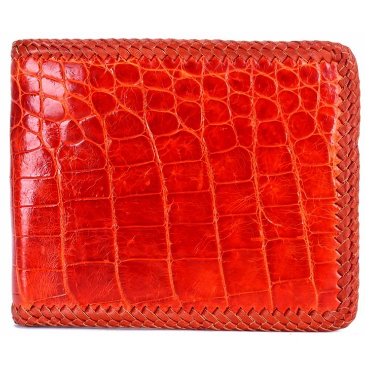 Bóp/Ví da cá sấu Huy Hoàng đan viền da bụng màu đen, nâu đất, nâu đỏ, vàng bò 2254-2711-2712-2713