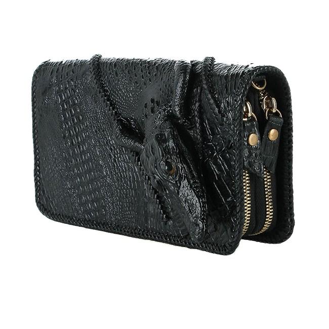 - Tên sản phẩm: Ví nữ da cá sấu Huy Hoàng nhiều ngăn đầu cá sấu đan viền màu đen HP3730