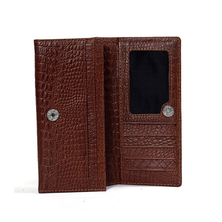 Ví/Bóp nữ da bò Huy Hoàng vân cá sấu lớn 3 gấp màu nâu đỏ 3154