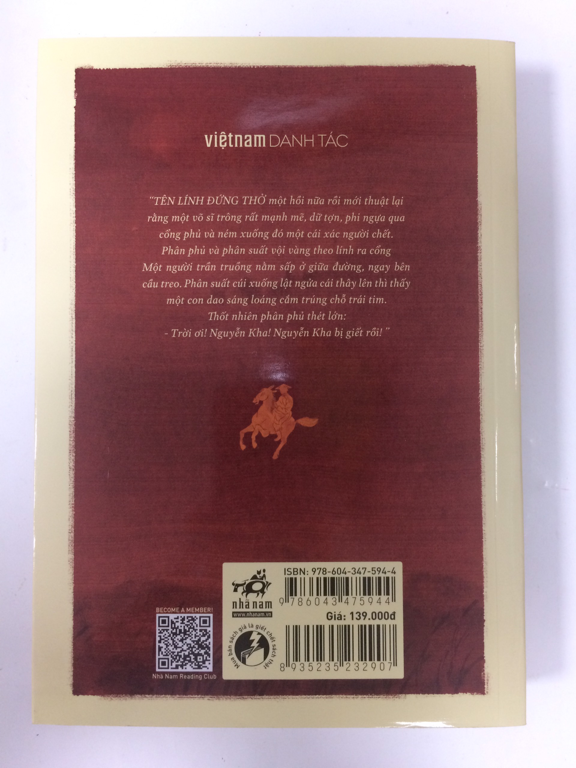 Giới thiệu sách “TÊN LÍNH ĐỨNG THỞ một hồi nữa rồi mới thuật lại rằng một võ sĩ trông rất mạnh mẽ, dữ tợn, phi ngựa qua cổng phủ và ném xuống đó một cái xác người chết. Phân phủ và phân suất vội vàng theo linh ra cổng Một người trần truồng nằm sấp ở giữa đường, ngay bên cấu treo. Phân suất củi xuống lật ngửa cái thấy lên thì thấy một con dao sáng loáng cắm trúng chỗ trái tim. Thốt nhiên phân phủ thét lớn:
