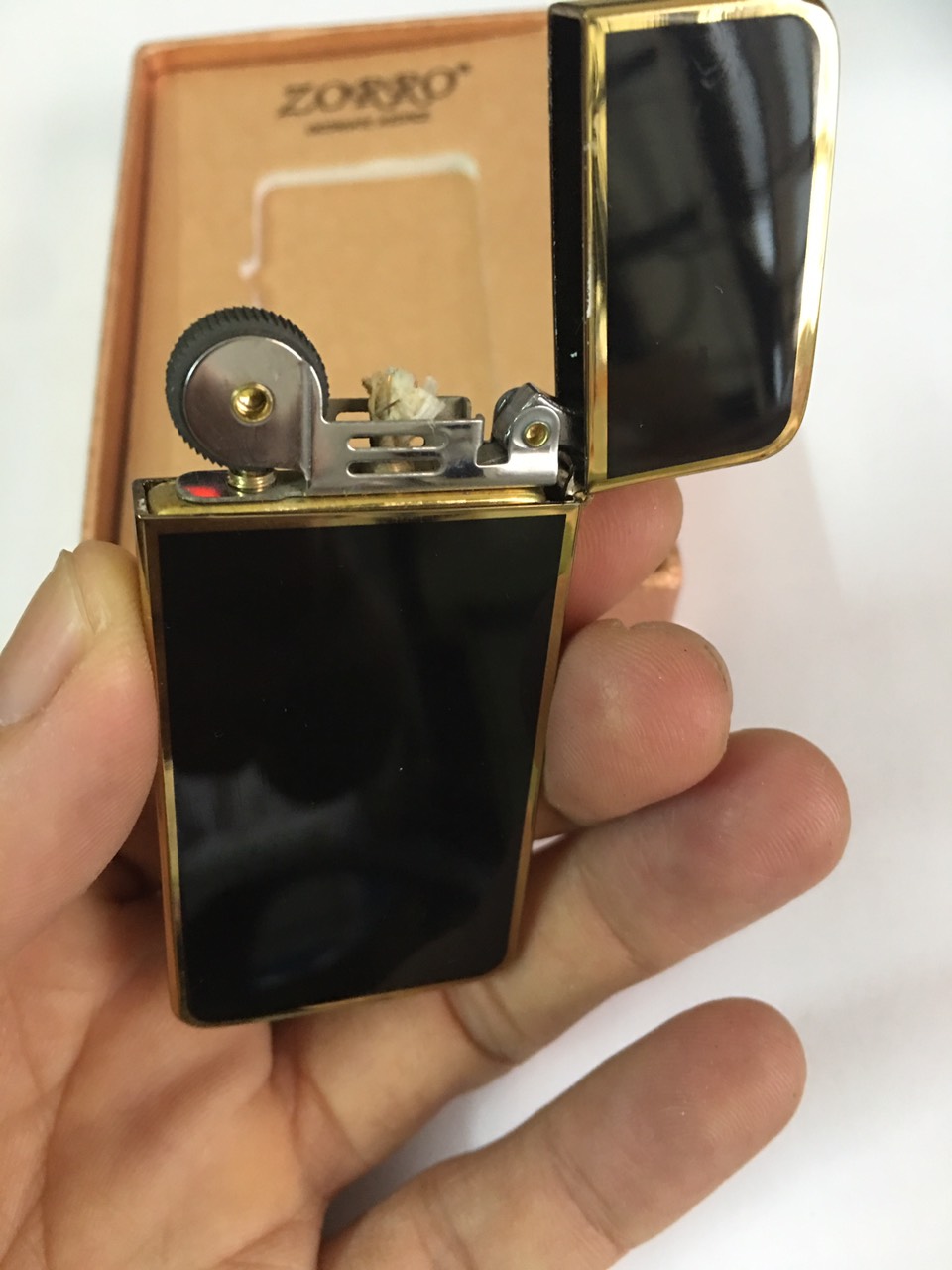 Hộp quẹt bật lửa xăng đá siêu mỏng Zorro ZC5 sơn mài đen viền vàng #batluadocla #batluadep #zorro
