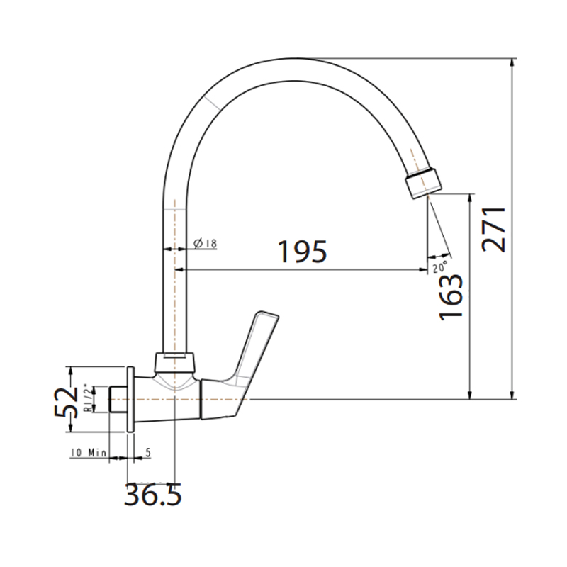 • Loại sản phẩm : Vòi lạnh gắn tường dùng cho chậu rửa chén bát