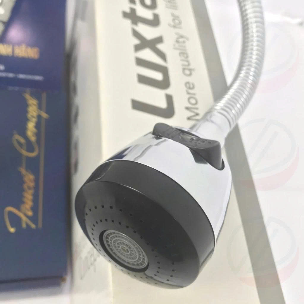 Đầu vòi xả: Dạng tăng áp mạnh mẽ, phun tia 2 chế độ, linh hoạt và tiện dụng