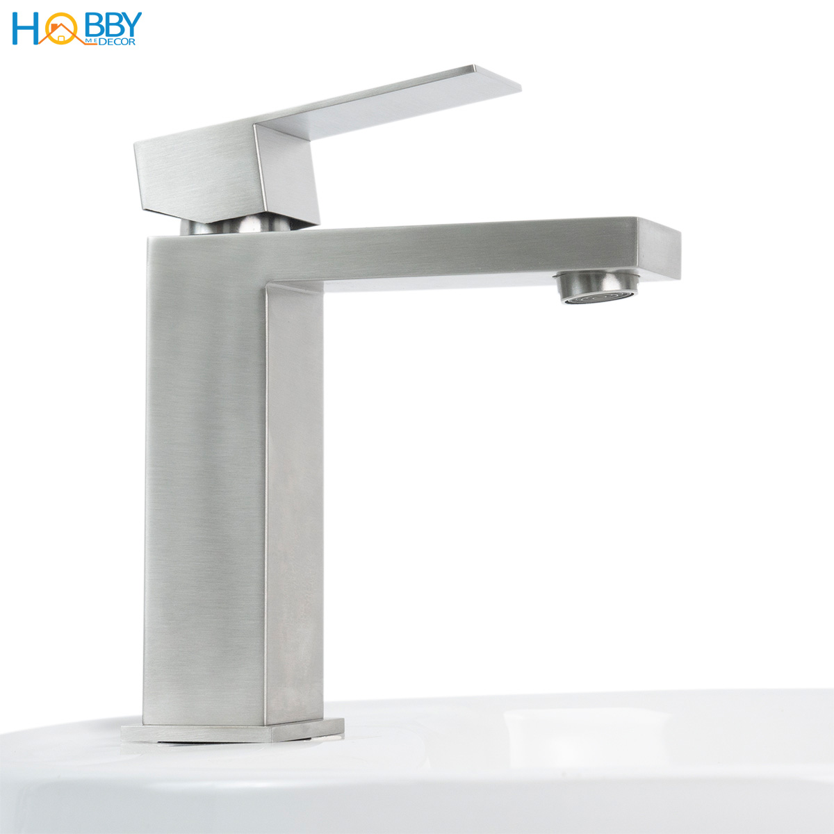 Vòi chậu lavabo rửa mặt nóng lạnh inox 304 mờ Hobby home decor VRM6