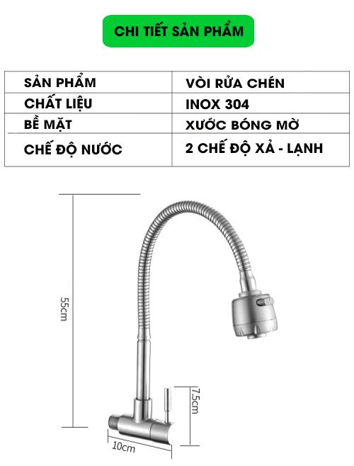 Kosko xin gửi đến các bạn một trợ thủ đắc lực đó là Vòi rửa bát - vòi nước rửa chén inox SUS 304. Vòi chậu rửa bát inox 304 không chỉ đa dụng còn mang lại cho phòng bếp của bạn sự sang trọng, tiện nghi nhất. Với thiết kế đặc biệt phần đầu vòi có thể xoay 360 độ và đầu vòi nước vươn dài đến 20cm, giúp công việc rửa chén bát - rau củ của chị em trở nên dễ dàng, thuận tiện hơn. Chi tiết mô tả bên phía dưới đây bạn nhé!