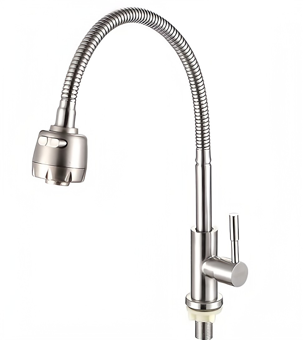 Vòi rửa bát 1 đường nước lạnh, gồm có nhiều lựa chọn như sau: Mẫu 1. Vòi rửa bát lạnh RC4A3 chất liệu inox, thân uốn dẻo, đầu vòi lò xo tăng áp, 2 chế