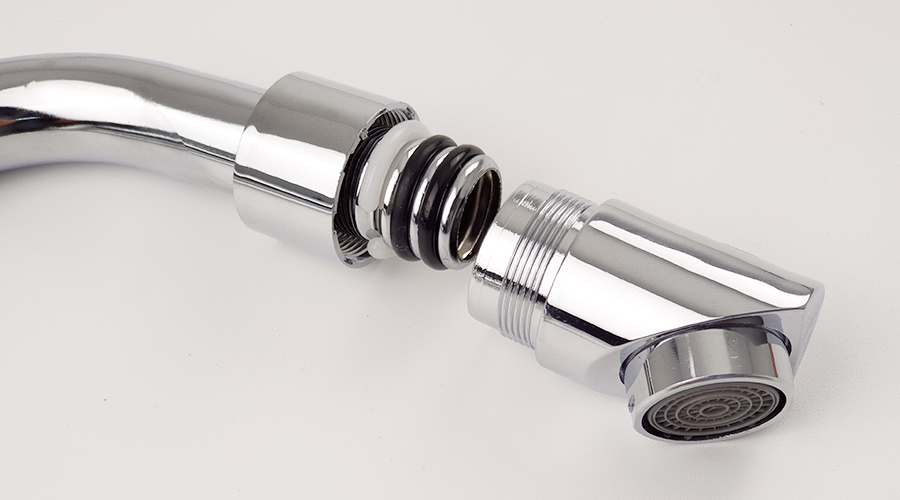 Đầu vòi có thể tháo rời để vệ sinh hay lắp đặt them máy lọc nước đầu vòi.