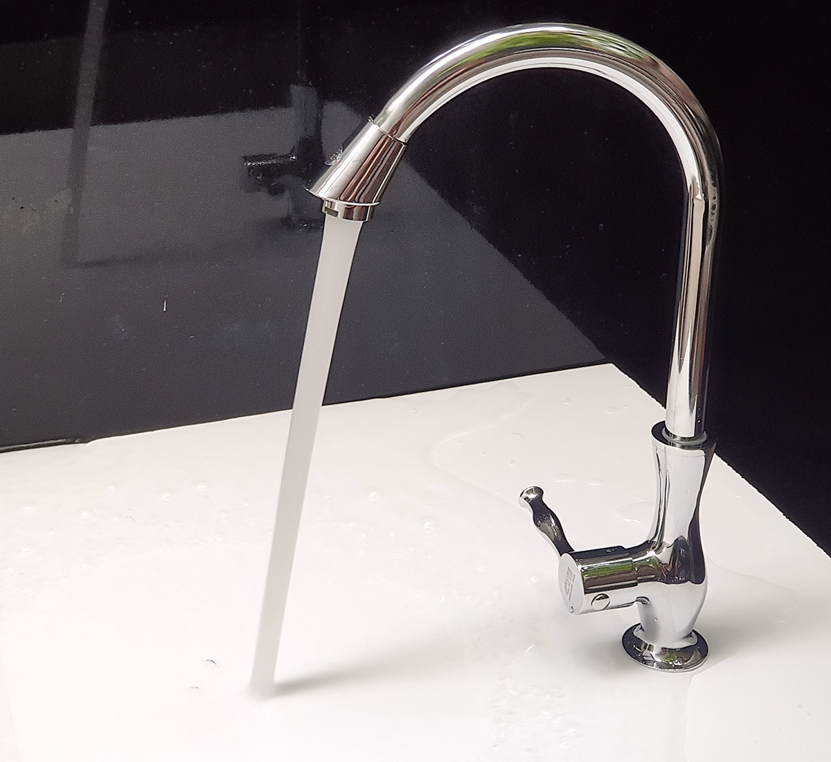 Ống vòi quay 360 độ, điều hướng dòng chảy mợi nơi theo yêu cầu. Ống quay 360 độ lên thân vòi có thể lắp cho tay cầm mở nguồn nước bên trái, bên phải hay nằm mặt trước vòi đều được.