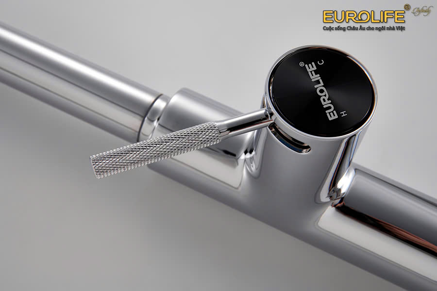 Vòi rửa chén nóng lạnh Đồng mạ Chrome Eurolife EL-KM01 (Trắng bạc) * Hãng sản xuất : Eurolife Việt Nam * Chất liệu : Sản phẩm được đúc trọng lực bằng hợp kim đồng 61%,