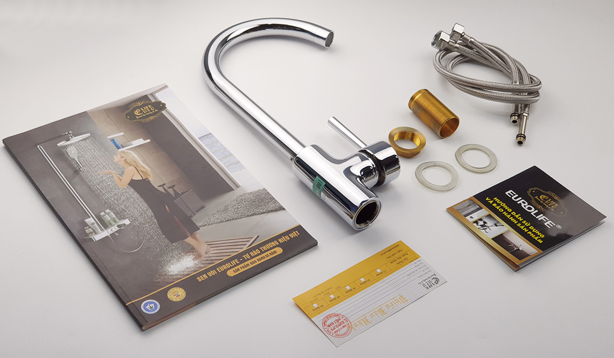 • Bộ sản phẩm được đóng gói trong túi vải cotton, hộp màu riêng của Eurolife. Bộ sản phẩm đầy đủ bao gồm : Thân vòi Lavabo, 1 bát gắn, 2 roong cao su, 2 dây cấp 60cm, 1 phiếu bảo hành chính hãng.