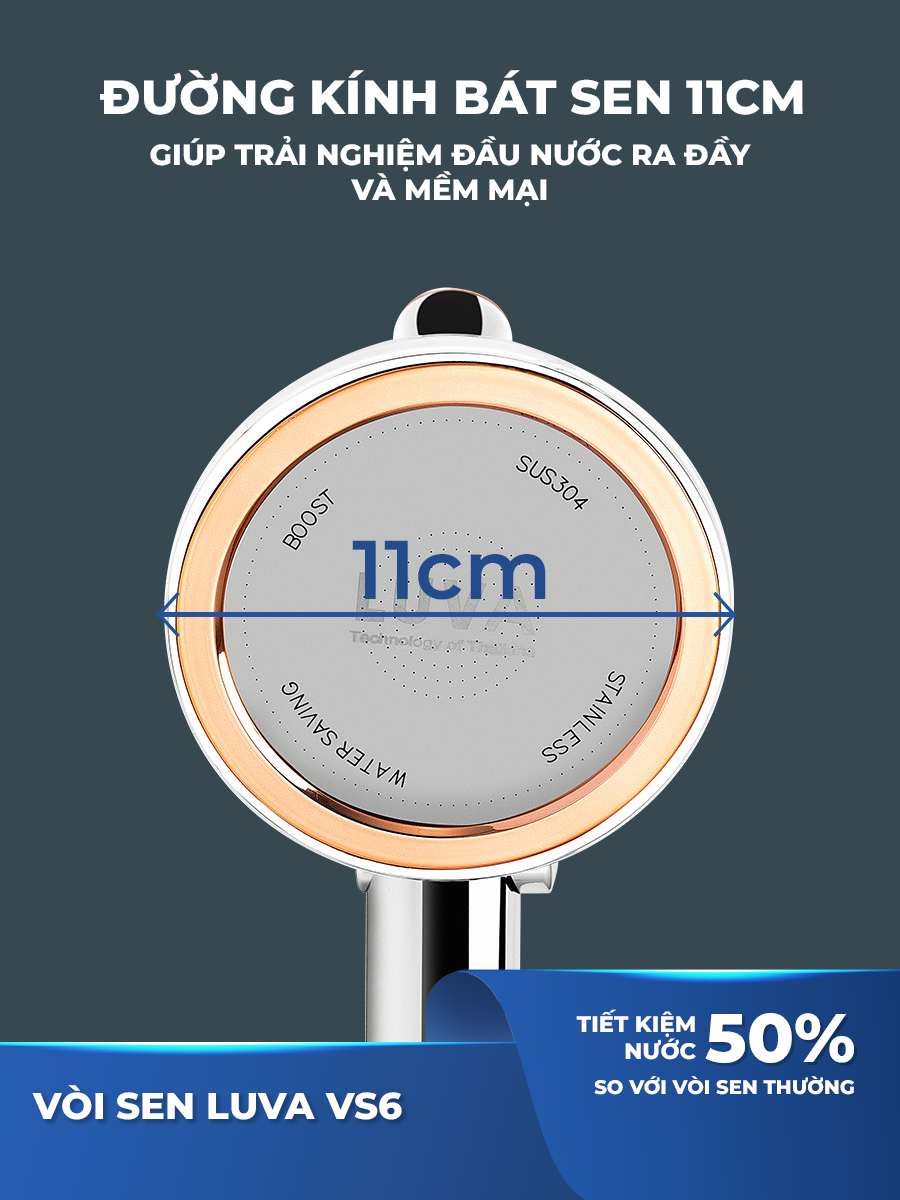 Vòi hoa sen LUVA VS6, đường kính bát sen to 11cm, bật tắt trên vòi sen