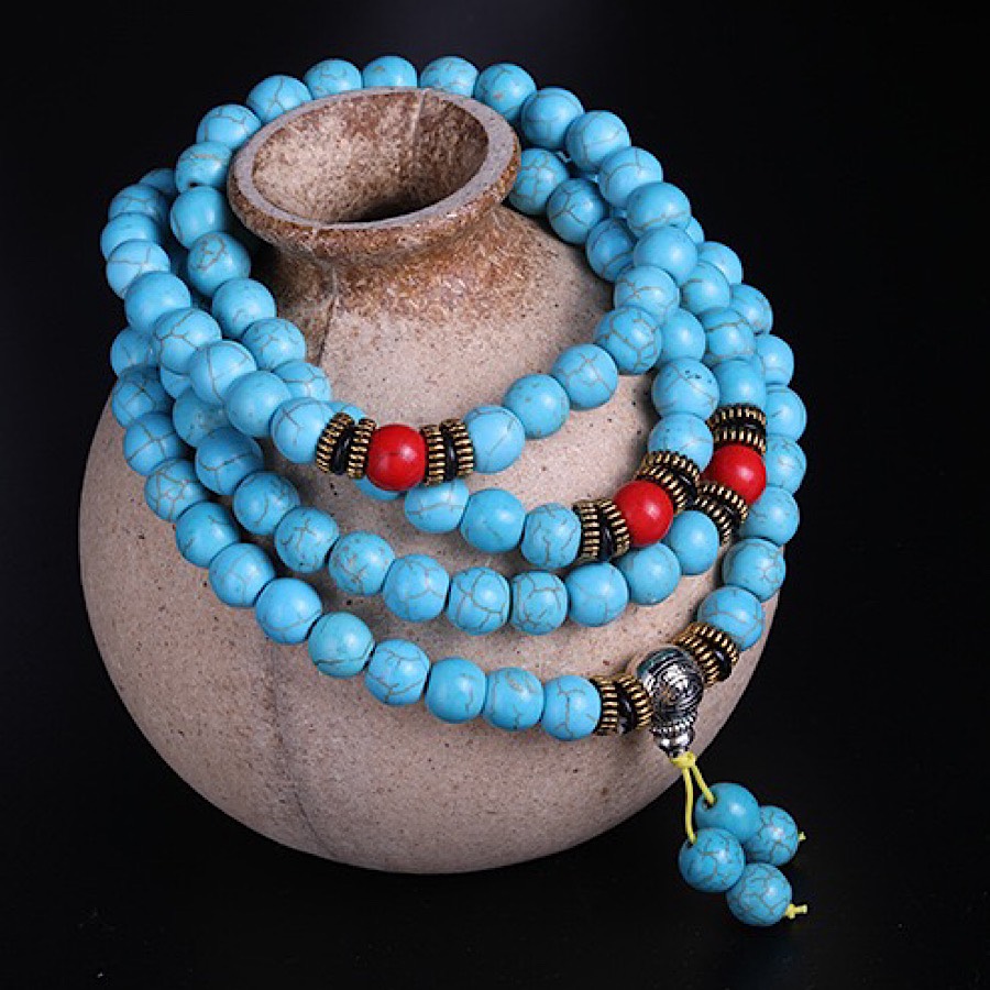 - Cách sử dụng: chuỗi đeo tay hoặc đeo cổ ️️ Vòng chuỗi Ngọc lam Tây Tạng - SỰ CHE CHỞ CỦA NĂNG LƯỢNG BÌNH AN Turquoise còn có tên gọi khác là Lục Tùng Thạch hay Lam Ngọc là loại đá được yêu thích nhất bởi người Tây Tạng. Với năng lượng bình an, mang sắc đại diện cho Đấng Tỉnh Thức và lòng Từ Bi sâu thẳm - Đức Lục Độ Phật Mẫu Tara. Người sở hữu Ngọc Lam được ví như mang bên mình một thứ bảo vật, giúp vượt qua những nỗi lo âu, sợ hãi từ các chướng ngại trong cuộc sống. Theo mật viện Norbulingka, đá Turquoise còn mang đến những tác động tích cực đối với hệ tiêu hóa, đồng thời làm thanh lọc khí huyết trong cơ thể. Vòng tay cũng có công dụng rất lớn trong việc hỗ trợ tu tập, làm tịnh hóa không gian và lan tỏa năng lượng an lành của chánh pháp. Torquoise đồng thời là món trang sức được rất nhiều người sưu tập đá trên thế giới ưa chuộng. Vòng tay mang đến cho người sở hữu những niềm an lạc và yêu thương