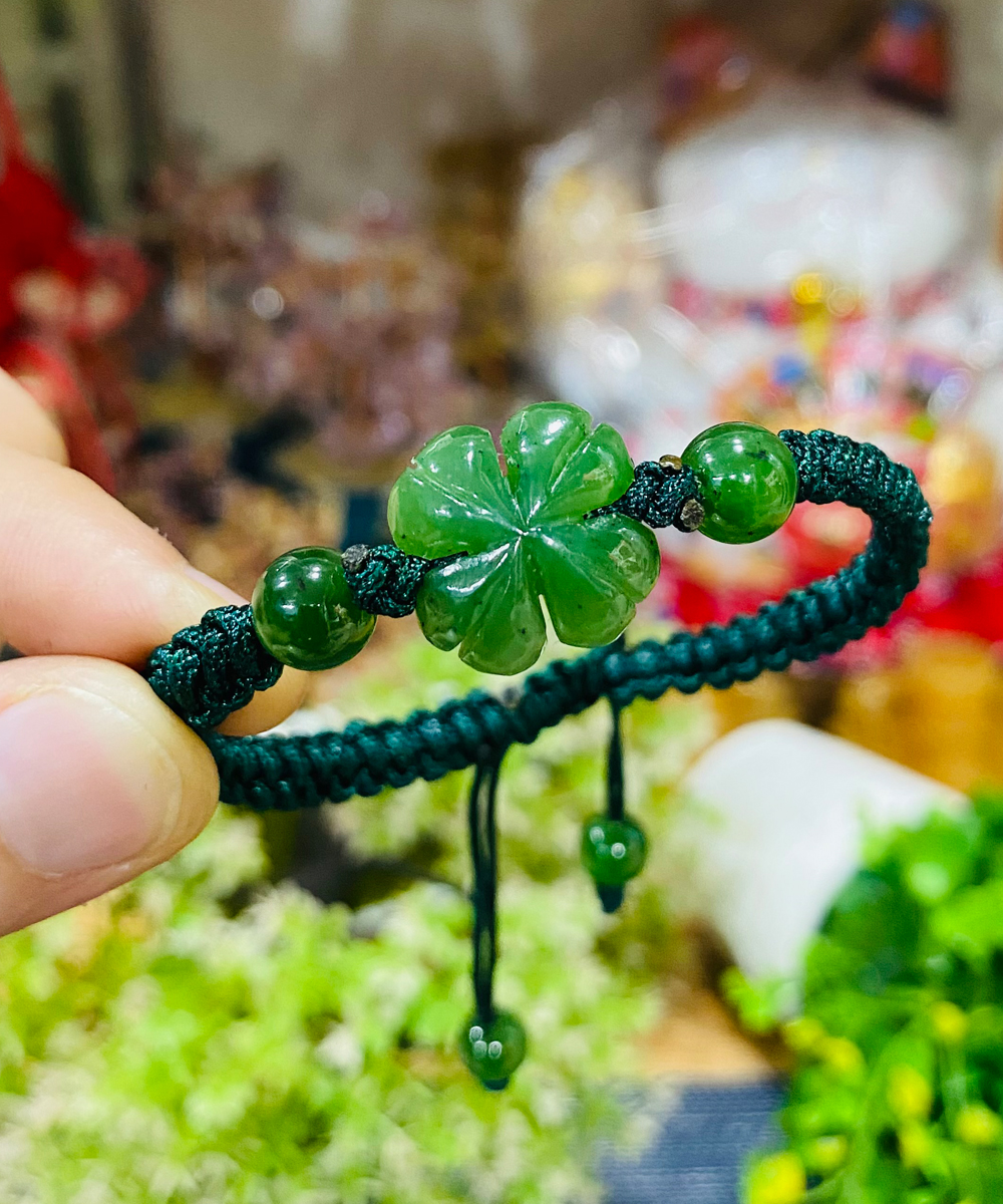 VÒNG TAY CỎ 4 LÁ NGỌC BÍCH TẾT DÂY