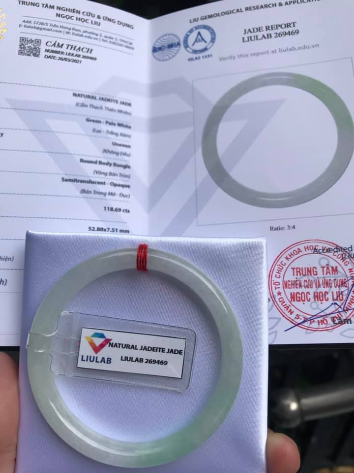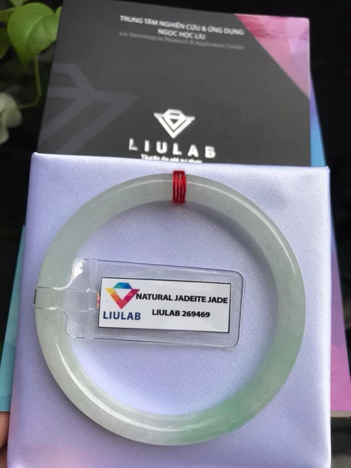 ✨Vòng Tay Đá Cẩm Thạch TR LÝ A 51mmx Dầy 6,5mm Kèm Giấy Kiểm định Liulab No 269469 Chất liệu đá cẩm thạch tự nhiên trắng Điểm Xanh Lý 1 Bên Nữ cân nặng 50kg - 56kg đeo ạ