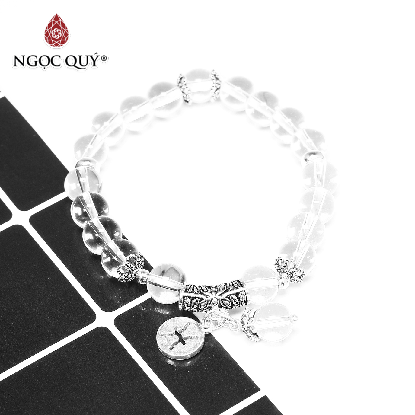 VÒNG TAY ĐÁ THẠCH ANH TRẮNG CHARM 12 CUNG HOÀNG ĐẠO BẠC :