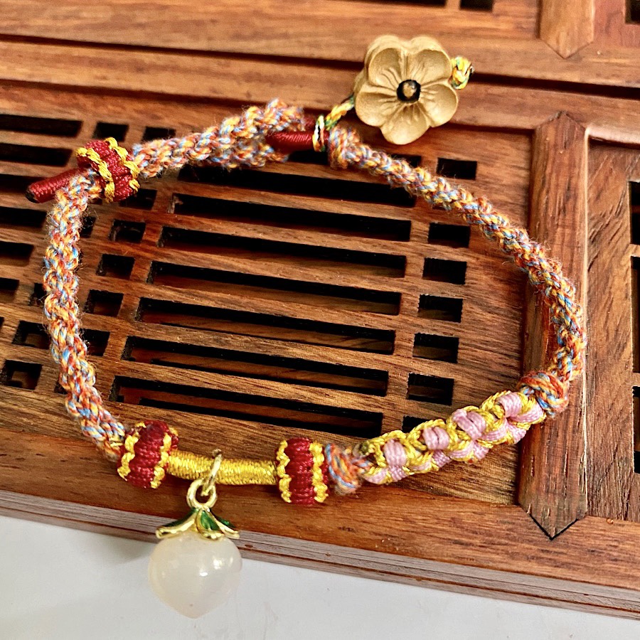 ✨VÒNG TAY DÂY NGŨ SẮC HOA ĐÀO VÀ TRÁI ĐÀO TÌNH DUYÊN VẸN TRÒN