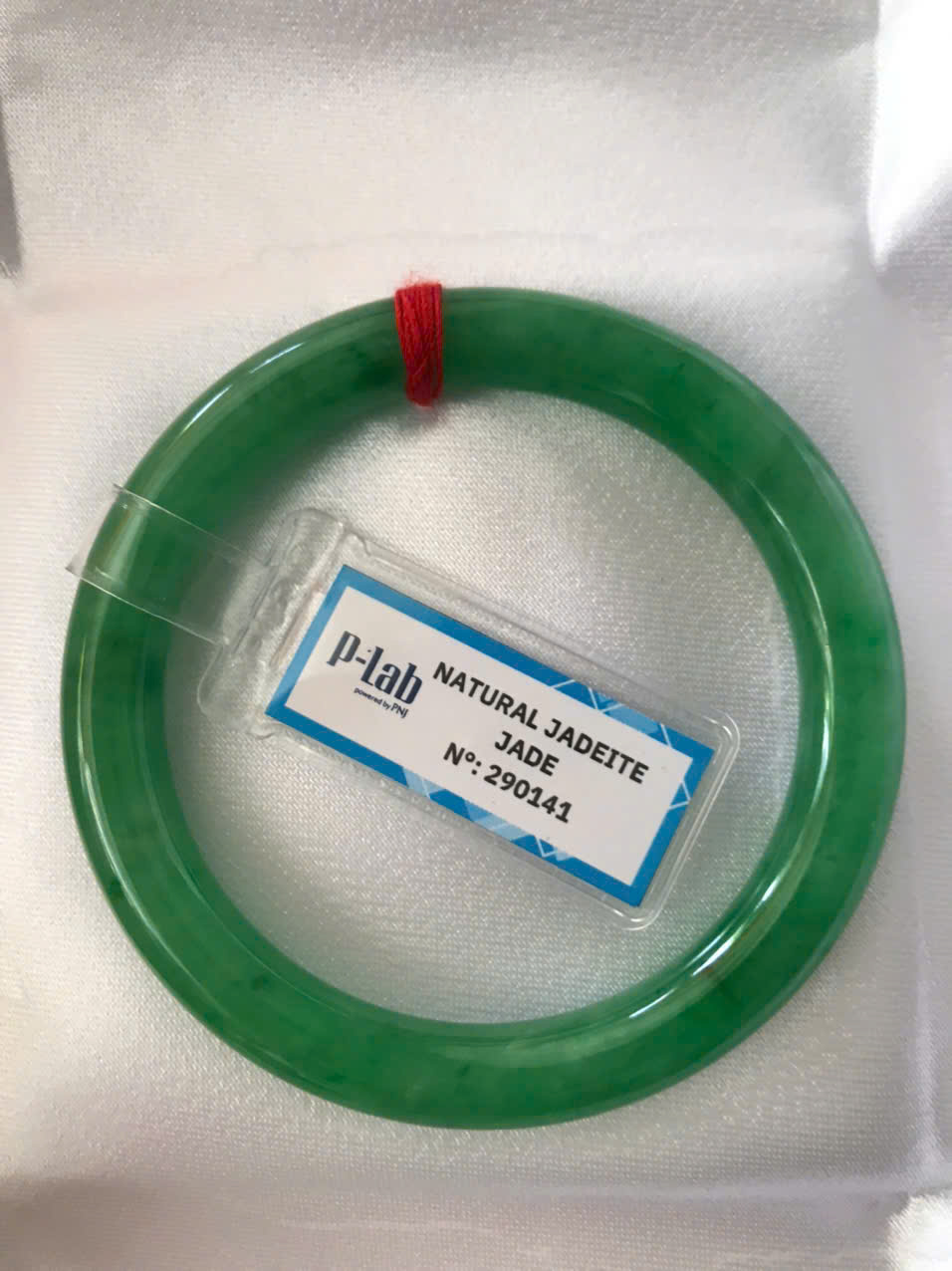 *** Vòng kiểm định P Lab No 290141 Màu Xanh lý đậm đều bóng đẹp nữ 50kg - 54kg đeo ạ