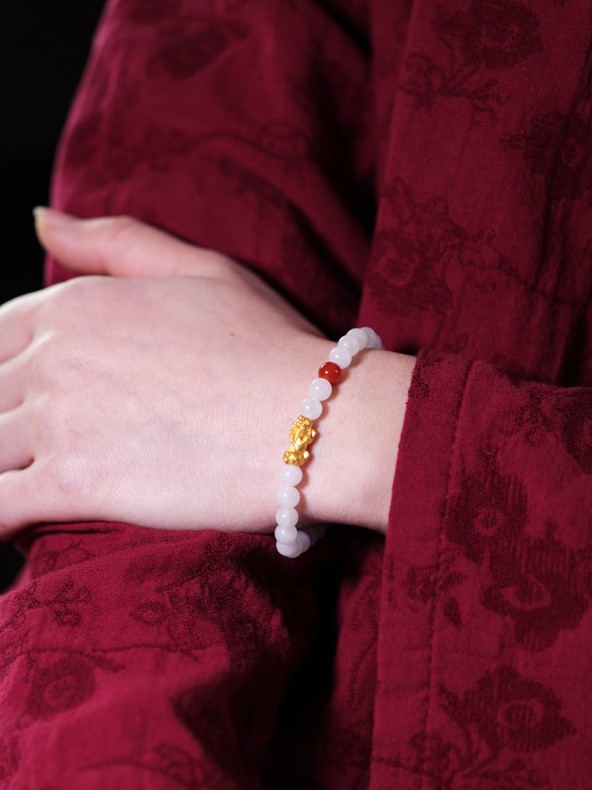 ✨Vòng tay nữ vòng tay may mắn đá mã não trắng gắn tỳ hưu cầu Tài Lộc Duyên MNTH04