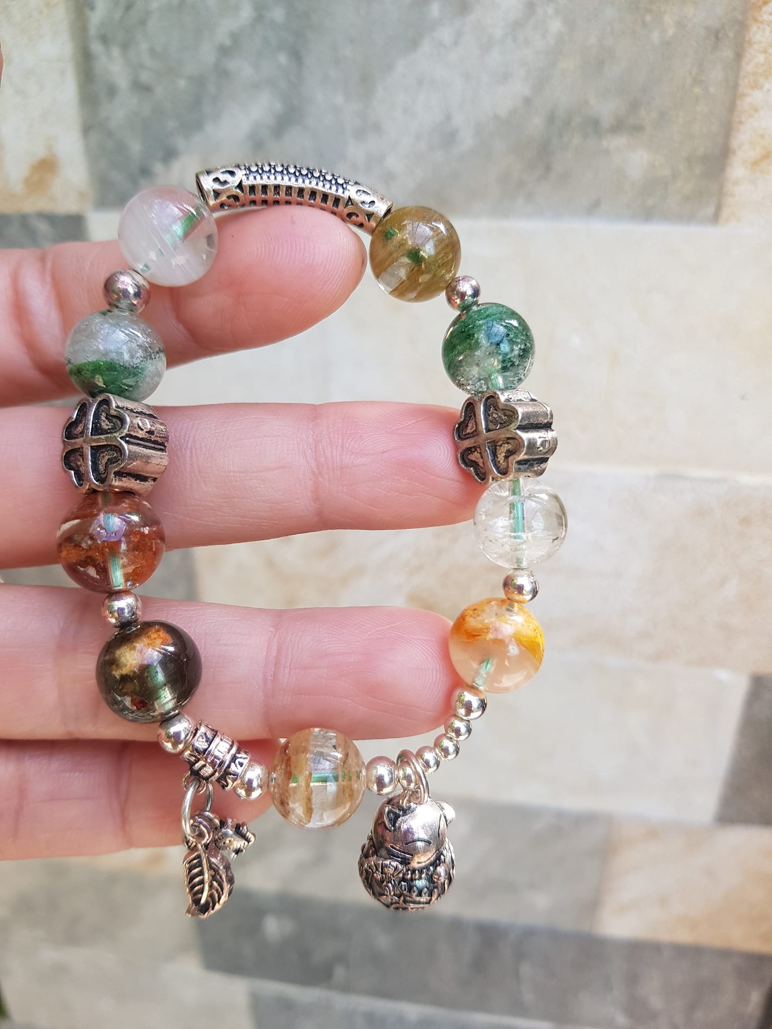 ✨Vòng tay phong thủy may mắn đá thạch anh Ưu linh tự nhiên Charm bạc kiểu hình chiếc lá mèo may mắn hoa đẹp lắm ạ Nữ đeo lên tay vừa đẹp vừa sang tốt cho sưc khỏe, may mắn và phong cách trẻ trung sang trọng ạ