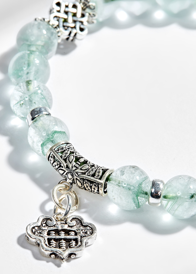 - Vòng tay thạch anh tóc xanh phối charm bạc (8mm) sẽ tạo ra một từ trường lục quang mạnh mẽ. Đem lại nhiều vận may, giúp bạn thăng chức và ký nhiều hợp đồng chất lượng.