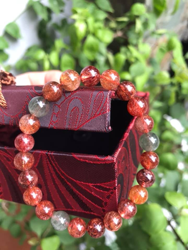 VÒNG TÓC ĐỎ THẠCH ANH ĐẸP SIZE 9MM NỮ mạng HOẢ THỔ ĐÁ THIÊN NHIÊN BẮT ÁNH KIM MẠNH