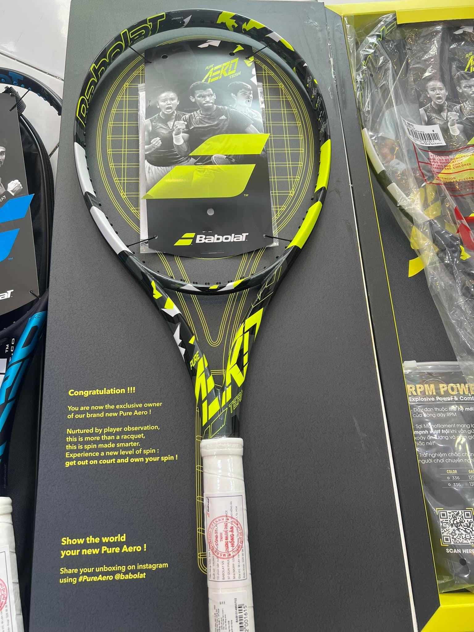 PURE AERO 285 gram dành cho các tay thích chơi sức mạnh, nhiều vòng quay cùng sự linh hoạt trên khắp mặt sân. Thông số chi tiết : Trọng lượng không căng dây : 285 gram Mặt vợt : 100 inch Chiều dài tiêu cự : 27 inch Mật độ lưới : 16 x 19 Độ cân bằng : 4HL đã bao gồm dây - không hỗ trợ Trọng lượng xoay : 322 Độ cứng khung vợt : 65 Kích thước khung vợt : 23mm / 26mm / 23mm Lực căng khuyến cáo : 23 - 27kg