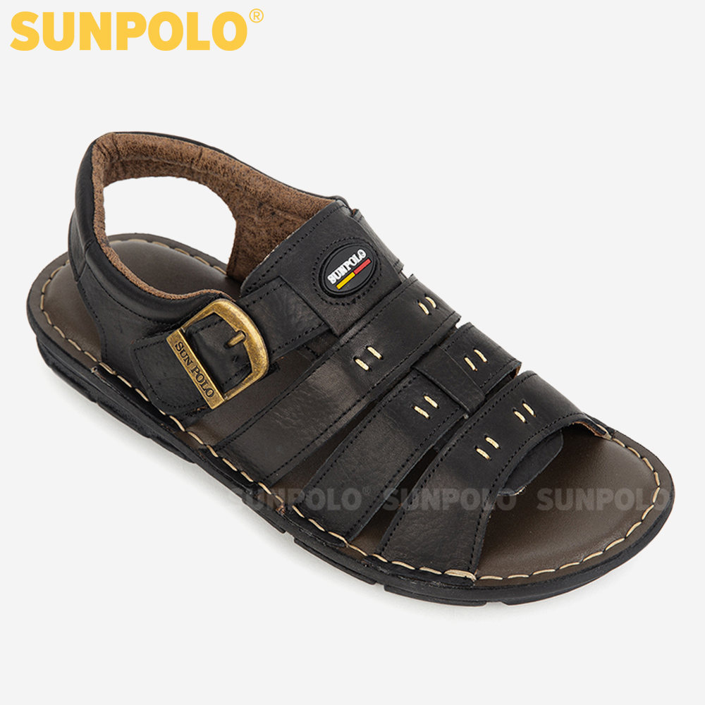 ✨Xăng Đan Quai Ngang, Giày Sandal Nam Da Bò SUNPOLO SDA006 (Đen)