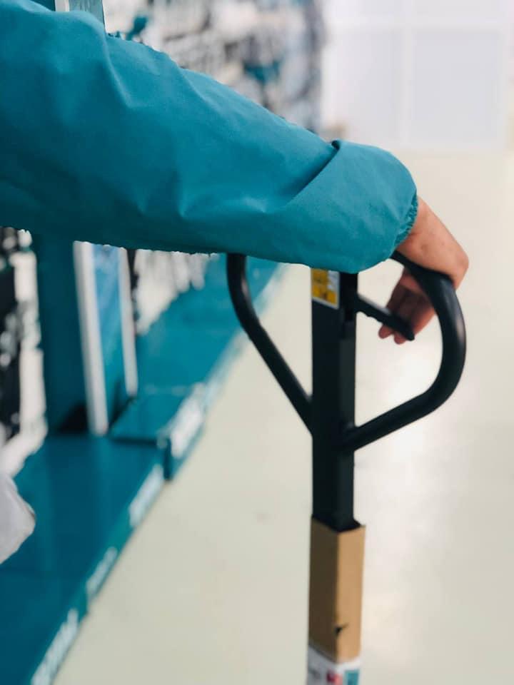 -Tải trọng 2.5 tấn, nâng thấp nhất: 85mm, nâng cao nhất: 200mm, kích thước bánh xe 200x50mm, chiều dài càng 1150mm