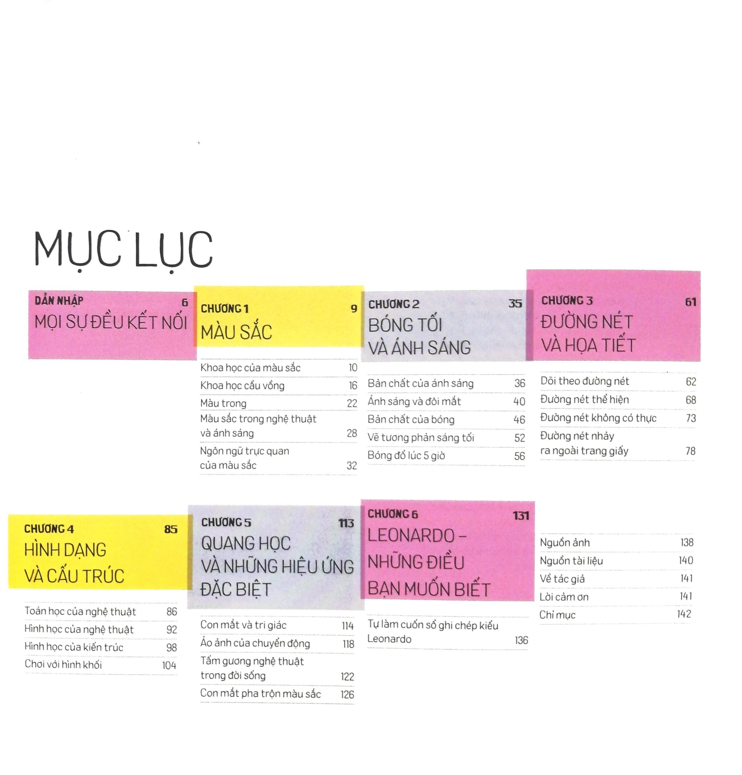 Mỗi chương trong sách được chia làm hai phần: các lý thuyết khái niệm tổng quát và các dự án thực nghiệm cụ thể. Cuốn sách giúp các bạn nhỏ có được sự hiểu biết hệ thống về các khía cạnh khoa học, nghệ thuật; bên cạnh đó, có thể áp dụng chính những lý thuyết vào những dự án vui nhộn, thú vị, vừa là sự trải nghiệm tiễn, vừa nhận được niềm vui khám phá, hiểu biết kiến thức khoa học.