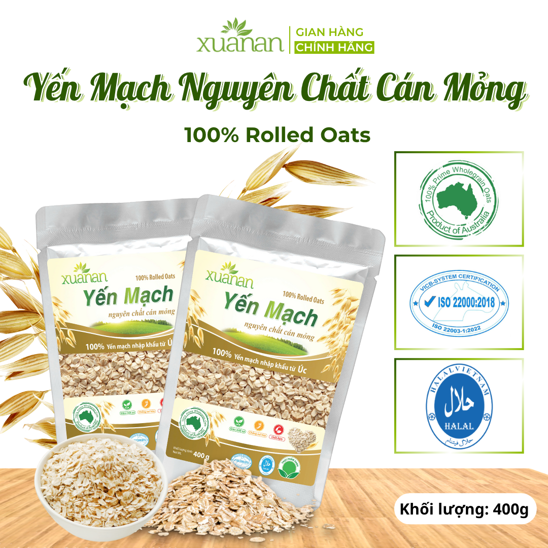 YẾN MẠCH NGUYÊN CHẤT CÁN MỎNG – TÚI 400GYến mạch nguyên chất cán mỏng Xuân An là sản phẩm yến mạch chất lượng cao, được nhập khẩu trực tiếp từ Úc, nơi nổi tiếng với nguồn yến mạch tự nhiên, giàu din...