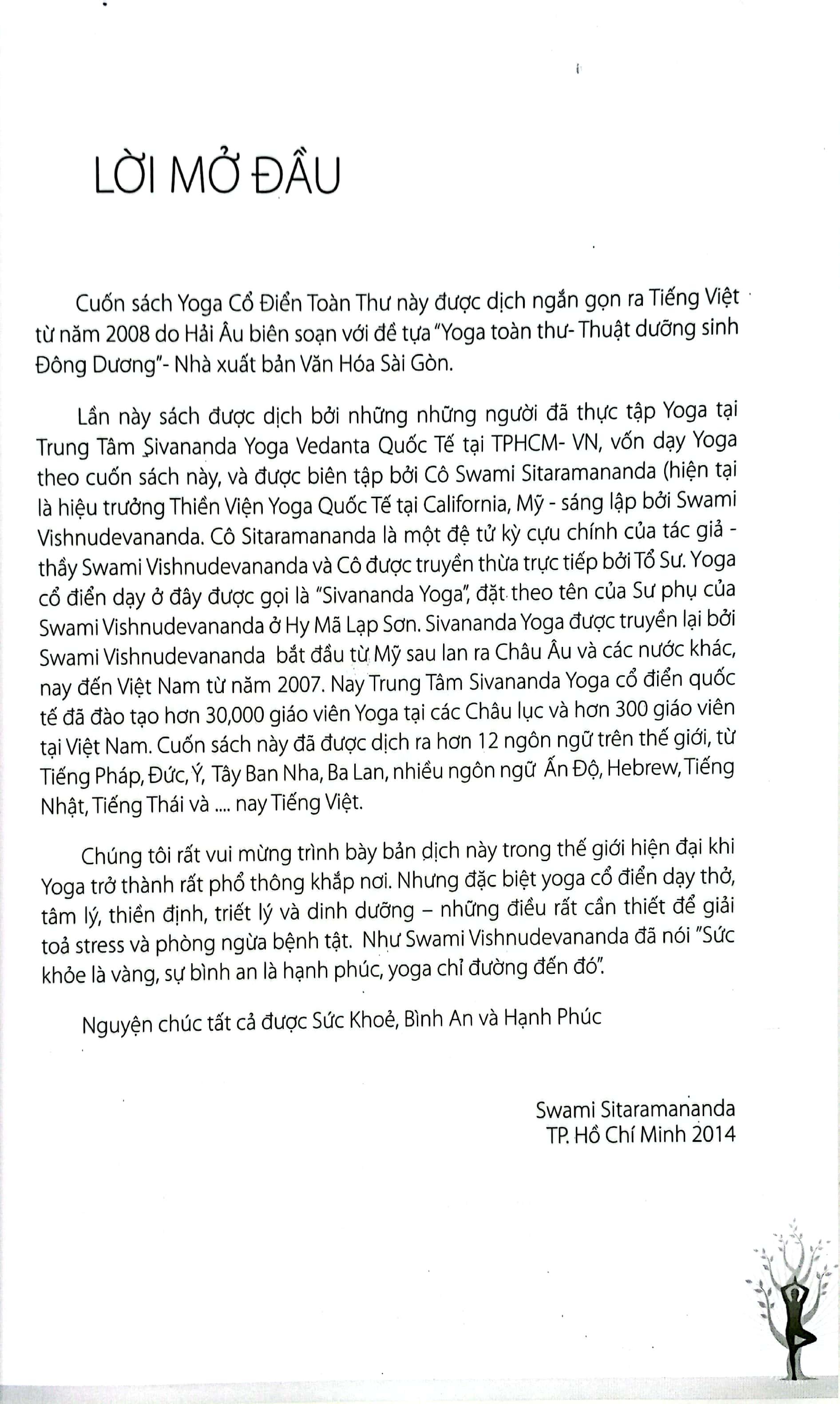 "The Complete Illustrated Book of Yoga" của Swami Vishnu Devananda đã dạy cho nhiều thế hệ phương Tây trải nghiệm những lợi ích lớn lao mà ngành khoa học cổ đại của Yoga hứa đem lại cho cơ thể, tâm trí, và tâm linh.